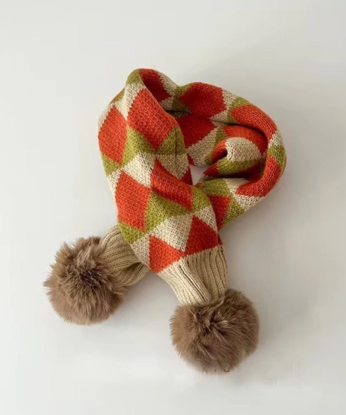 ほっこりカラーがシーズンムード高まるアーガイル柄マフラー◎