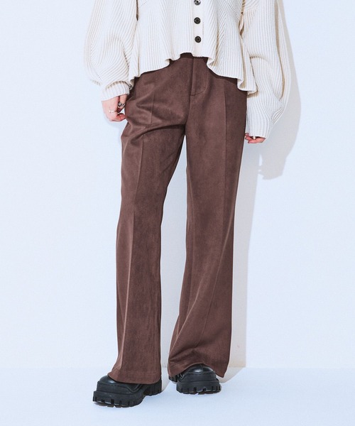 裾に向けて自然と広がるシルエットが足のラインを綺麗に魅せるパンツ。