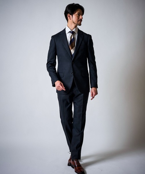 ジャケットはセンターベント仕様の2Bデザインで、動きやすさと上品さを両立。