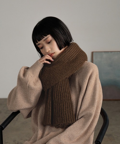 フンワリバルキーなローゲージリブニット編みストール。