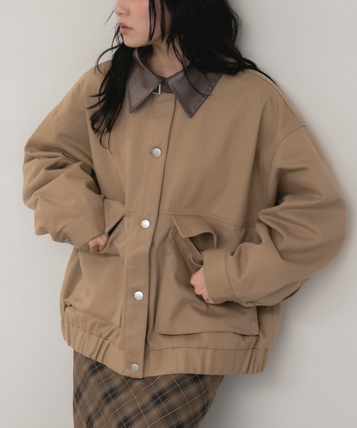 オーバーサイズのシルエットに、フェイクレザーの襟をポイントとして効かせたブルゾン。