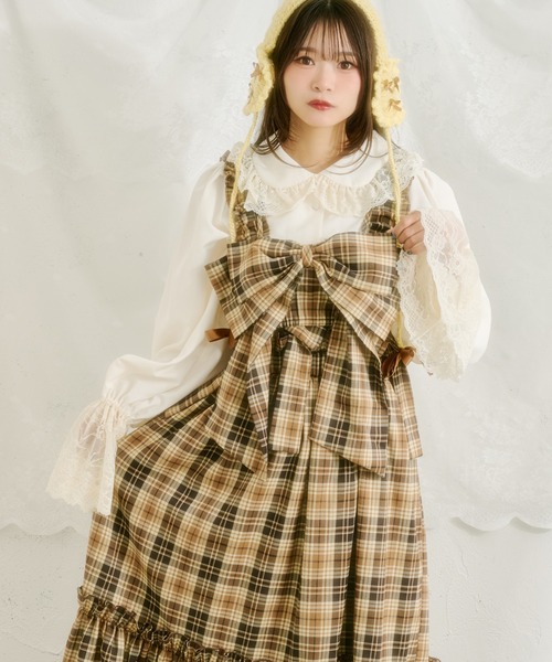 このセットアイテムは、肩紐が取り外し可能なジャンパースカートと、前後2wayで着用可能なリボンビスチェの2点セット。