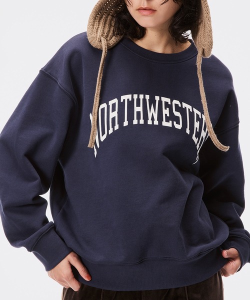 カレッジロゴが目を引く、シンプルながら存在感のあるスウェット。