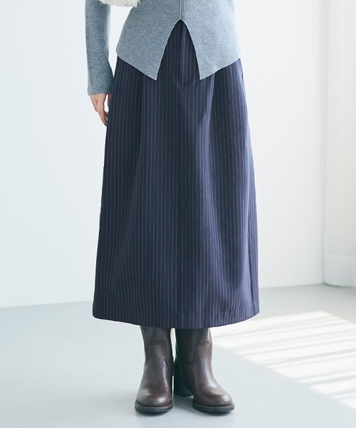 ボトムス スカート Iラインスカート スリット ストライプ ウエストゴム ファスナー ポケット シンプル カジュアル 25aw コカ COCA coca COCA coca