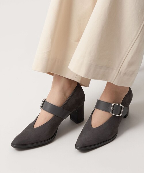 包み込むような履き口のラインと太めの甲ベルトが足をしっかりとホールドしてくれるパンプス。