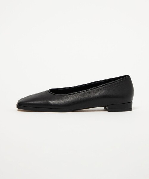 シンプルなデザインでありながら、幅広めのスクエアトゥや押し縁がモードな印象をプラスするフラットシューズ。