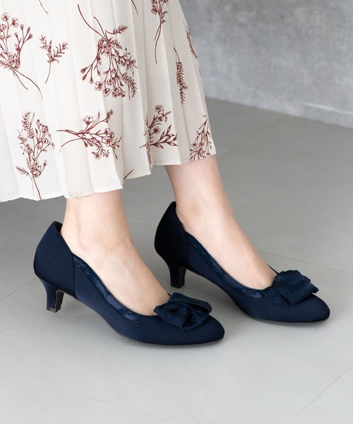 モチーフは取り外し可能な2WAY仕様で、シンプルな細めラウンドトゥパンプスとしても幅広いスタイリングにマッチ。