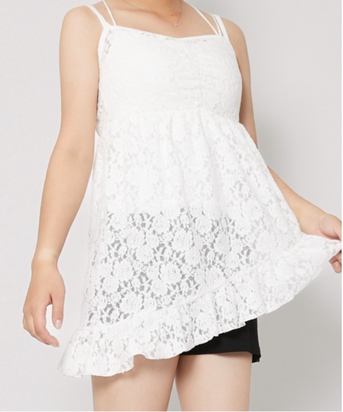 総カットレースが華やかな、チュニック丈のキャミトップス。
