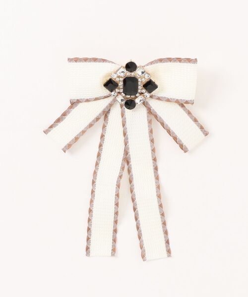 大きめビジューとブラック×ホワイトの配色が目を引く、ガーリーでクラシカルなリボンタイ。
