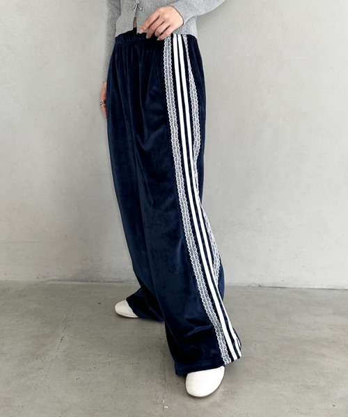 肌触りの良いベロア素材が、トレンド感溢れるトラックパンツ◎