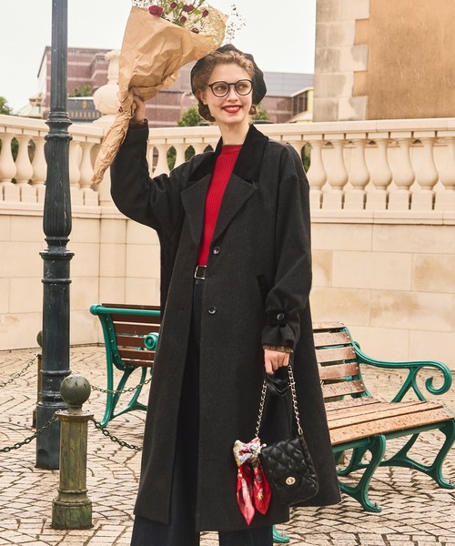 ・すっきりとしたテーラードカラーのメルトンロングコート