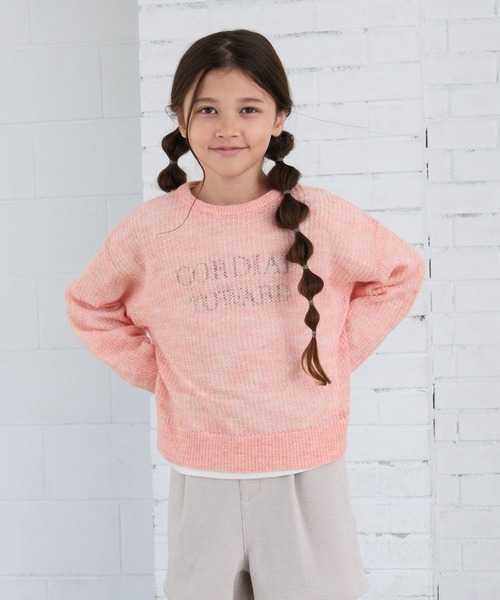 カラフルなモヘアの透かし編みニットと、長袖プリントTのセット商品。