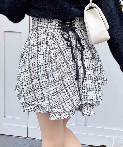 【上品ツイードでレディな着こなしが完成するスカート】