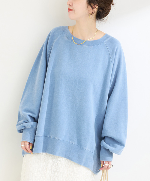 女性らしい雰囲気になるルーズな裏毛スウェット。