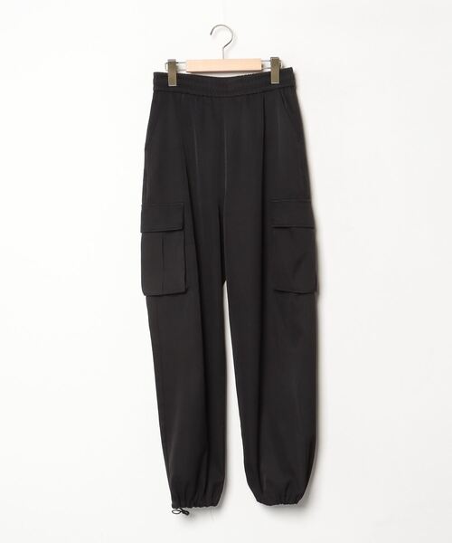 キーワード:カーゴパンツ レディース ウエストゴム ストレート ハイウエスト フルレングス ワイドパンツ 無地