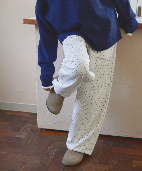 -ドットとボーダーが映えるアソートスウェットパンツ-