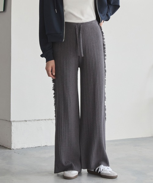 イージーケア機能付きで毎日履きたいリブニットパンツ。