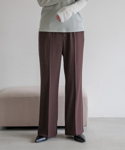 センタープレスが入った足長効果抜群のフレアパンツ。