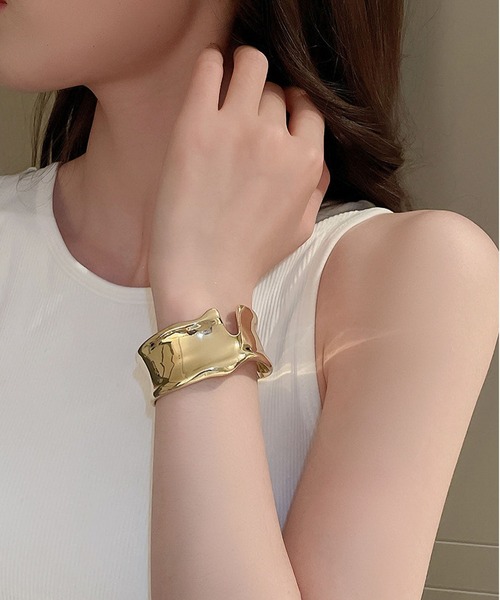 【存在感抜群のワイドフォルム】しっかりと幅を持たせたワイドデザインが、手元を華やかに彩るバングル。コーディネートに取り入れるだけで、モード感あふれるスタイルを完成させてくれます。