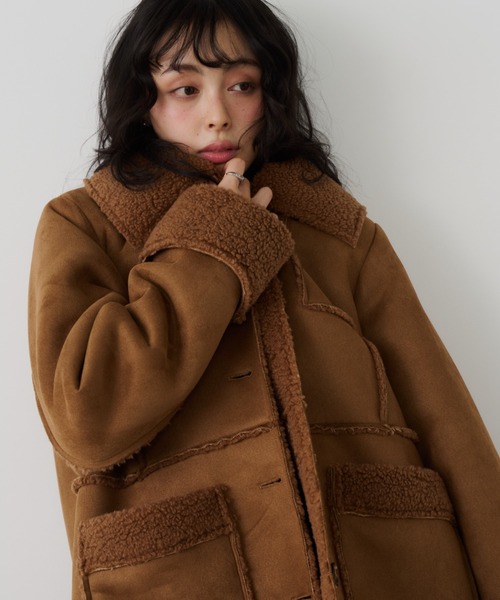 ヴィンテージライクなムード漂う、ボア切り替えが魅力のムートンコート。