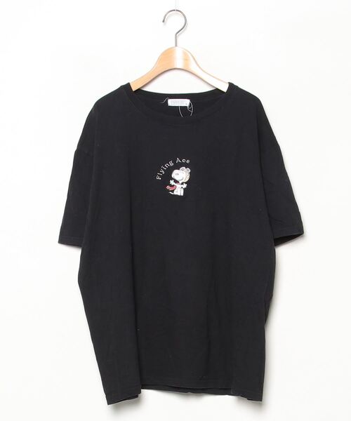 「PEANUTS」 刺繍半袖Tシャツ 3L ブラック メンズ