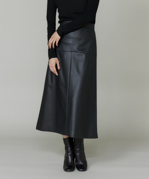 柔らかなフェイクレザーで仕立てたセミトラペーズスカート。長めのミディー丈、落ち感のあるシルエットが甘くなりすぎず、コーディネートをモードに仕上げてくれます。本革のような本物感のある着心地の良さを感じられる1着です。