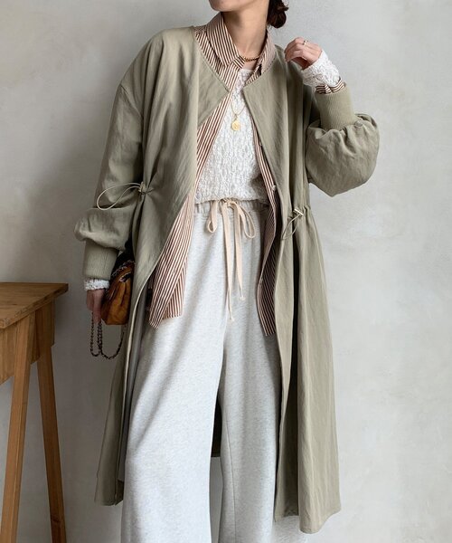 スウェットパンツやスカートなど幅広いスタイルに合わせやすいロングコートです。