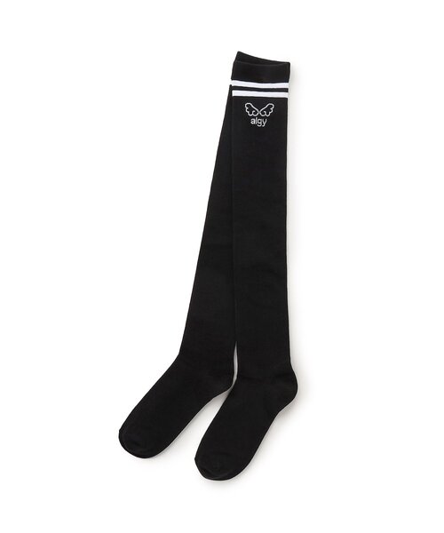algy(アルジー)の「エンジェルロゴ二―ハイソックス」は、流行に敏感な女のコの日常を可愛く、甘く彩るデザインが人気!これ1枚でおしゃれ上級者になれちゃう!