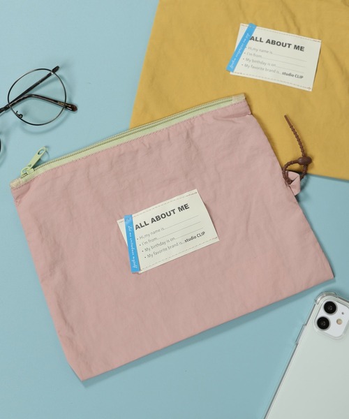 カラフルな色×結束バンドの装飾が目を引くナイロンポーチ。