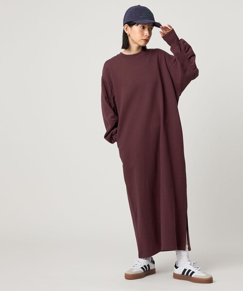 ギャザースリーブのデザインが目を惹くスウェットワンピース。