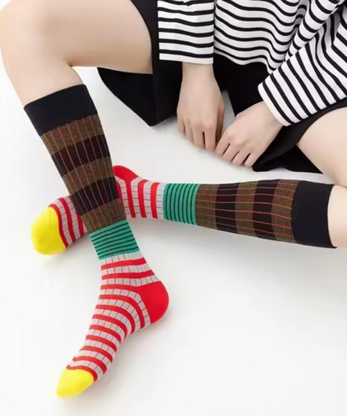 【 ammy. / エイミードット 】 マルチ カラー ボーダー デザイン ハイ ソックス