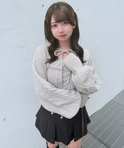 ・柔らかくふっくらとしたケーブルニットが着るだけで女性らしさ引き立てる1着です。