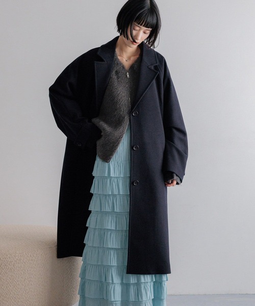 チェスター風の衿は、マフラーや色々なアクセサリーとの相性も抜群です。