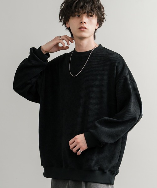 独特の光沢が上品な印象のコーデュロイ生地を使用したクルーネックプルオーバー。