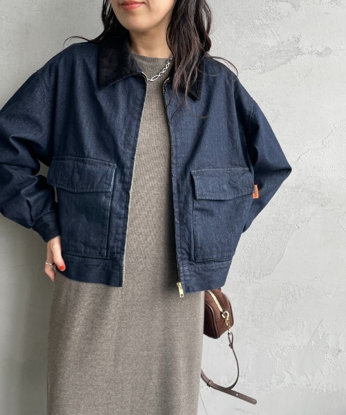 ●インディゴブルーとワンウォッシュはデニム生地に襟元にコーデュロイ素材の切り替えデザインが魅力