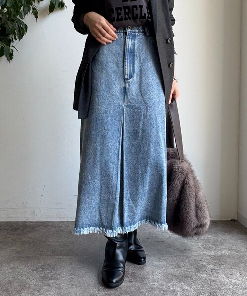 いつものデニムスタイルに、上品さを!カジュアルな印象のデニムスカートを、大人の女性にも似合う洗練された一枚に!