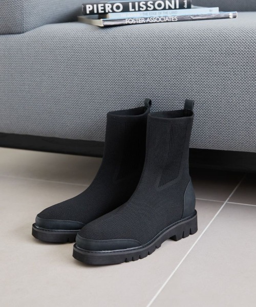 ニット×ボリュームソールのスタイリッシュなデザインが目を惹くニットブーツ。