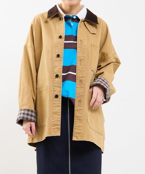 衿にはコーデュロイ、袖口裏にはチェック生地を使用しており、