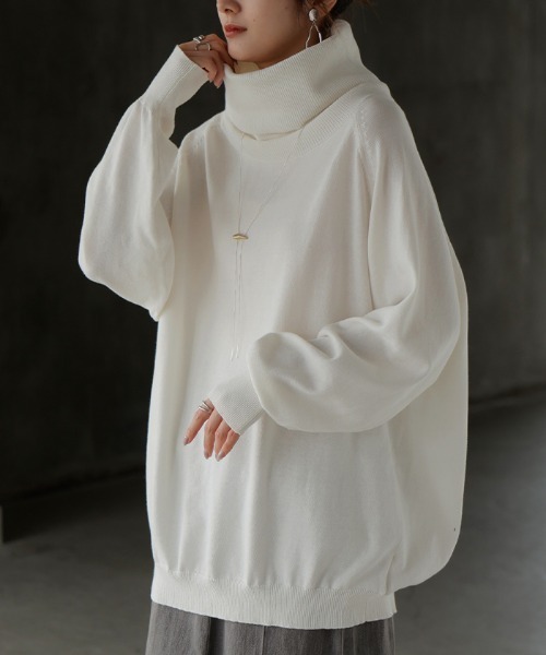 締め付けのないオフタートルなのでタートルネックが苦手な方も着やすいです。