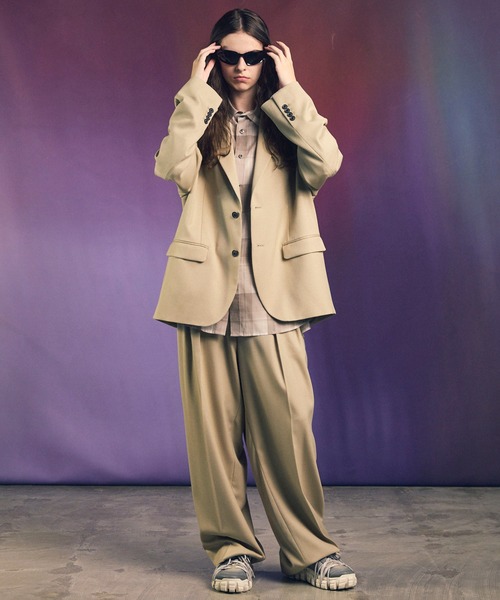 ジャケットはたっぷりとした身頃にドロップショルダーが抜け感を演出。