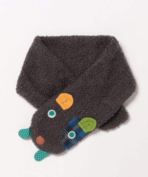 ワンちゃんの顔がモチーフのマフラー。同じシリーズのポシェットと合わせてお出かけが楽しくなりそう。ギフトにもおすすめです。