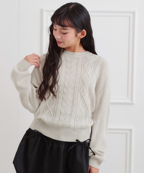 ワンポイント刺繍がアクセントになったシンプルなケーブルニット。