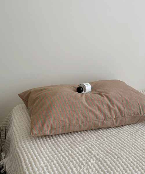 お部屋も即韓国っぽく、やさしいストライプ柄のピローケース。