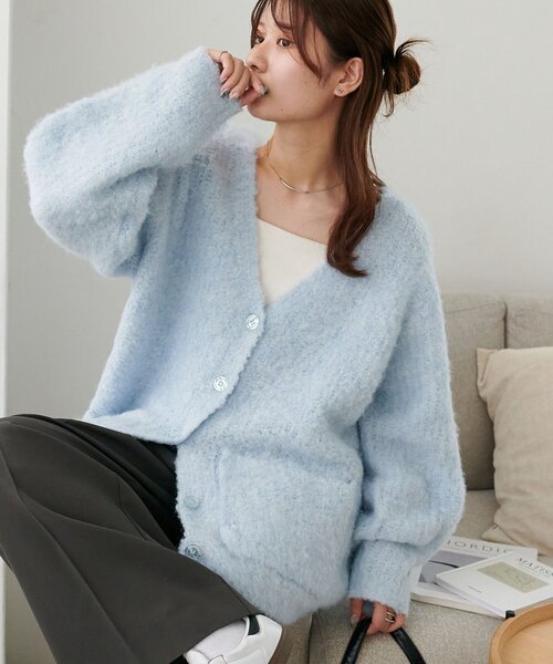 DISCOAT ONLINE LIMITED ITEM羽織るだけでこなれ感漂うニットカーディガン・ふんわりとした表面感が魅力のブークレ素材を使用