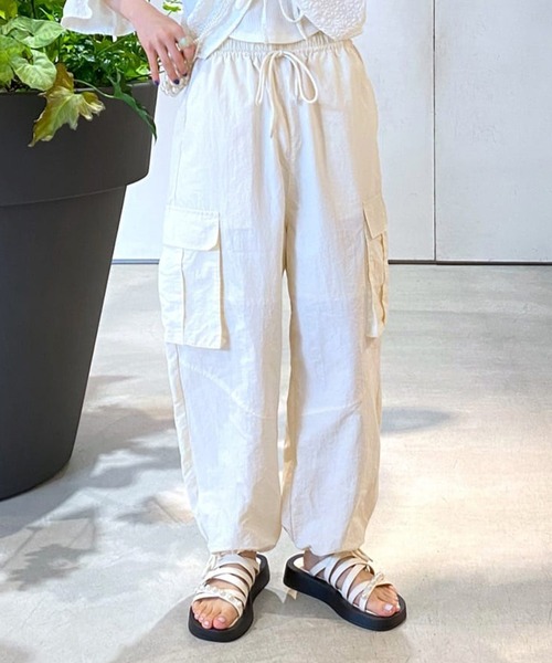 キーワード:カーゴパンツ レディース ウエストゴム ストレート ハイウエスト フルレングス ワイドパンツ 無地