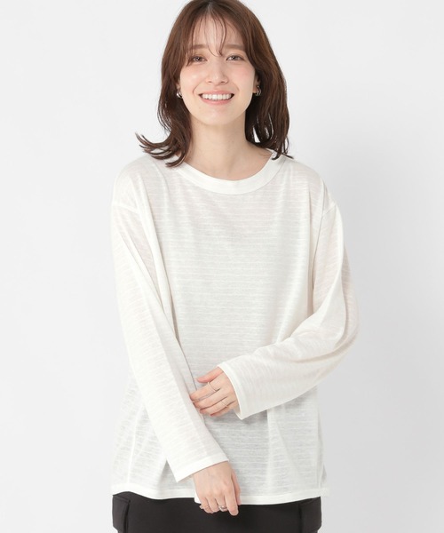 身体離れしたやや大きめシルエットのロングスリーブTシャツ。