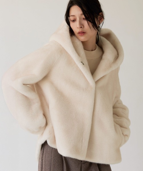 フード付きなので首元から顔まわりまでふんわりと包み込み、冬のお出かけも暖かく快適に。