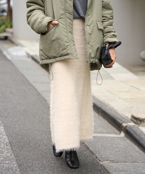 ふんわりとしたシャギー素材が魅力のニットスカート。