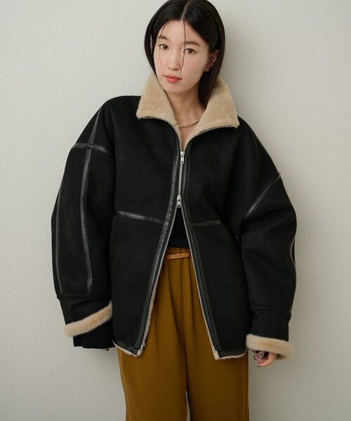 柔らかな肌触りのムートン素材が着心地良く、暖かさも兼ね備えたムートンコート・柔らかなムートン素材が肌触り良く、着心地抜群の一枚。
