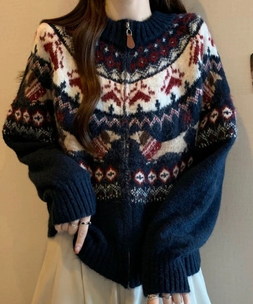 ノルディック柄ジップニットカーディガン|ふんわり柔らか、冬の主役に◎